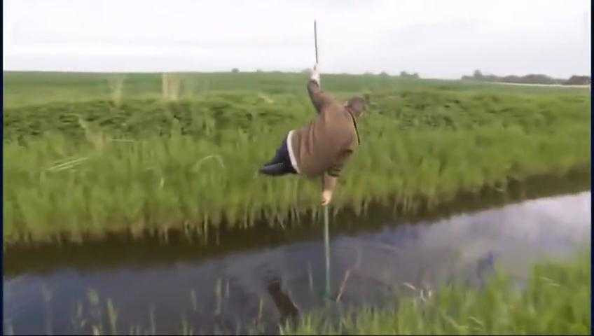 (VTC News) - Người đàn ông dùng gậy dài vượt qua dòng nước, tưởng đơn giản nhưng không phải lúc nào cũng thành công.