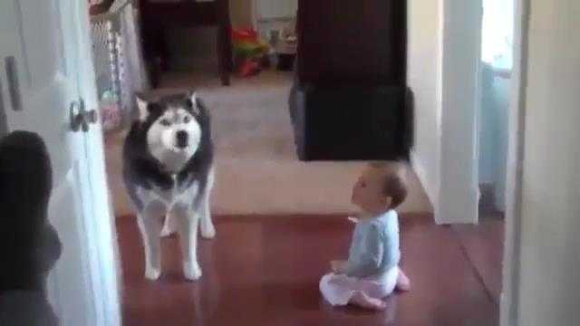 (VTC News) - Hễ em bé lên tiếng là con cho lại nhại theo vô cùng đáng yêu.