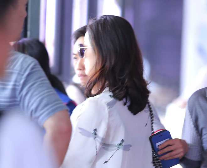 | Trong khi đó nữ diễn viên sinh năm 1992 cũng không ăn mặc quá cầu kỳ. Cô “ngụy trang” bằng cách đeo mắt kính to bản. Hạ Vi trông có vẻ mệt mỏi sau chuyến bay nên kiên nhẫn chờ đợi. |