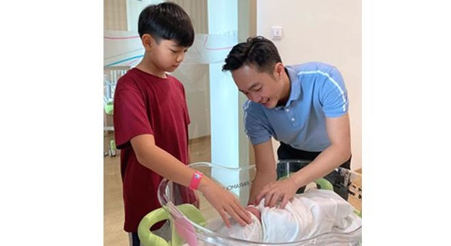 Trên trang cá nhân, Cường Đô La hạnh phúc chia sẻ khoảnh khắc cùng con trai Subeo ngắm nhìn con gái vừa chào đời.