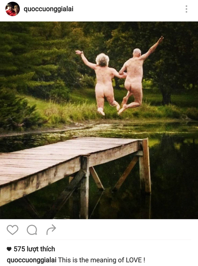 Ngoài ra, anh còn đăng hình ảnh hai cụ già khoả thân cùng nhau nhảy xuống hồ với chú thích: "This is the meaning of love" (Đây là ý nghĩa của tình yêu).