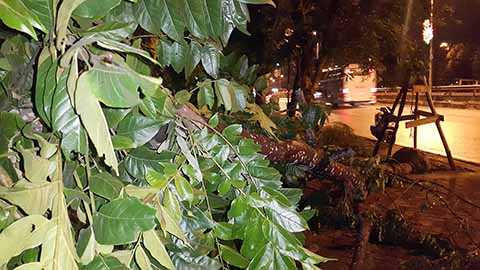 Một số cây mới trồng (gỗ mỡ) thay thế trên nhiều tuyến phố cũng bị đổ la liệt. Chính những cây này khiến người dân hết sức ngạc nhiên sau khi dông lốc đi qua.