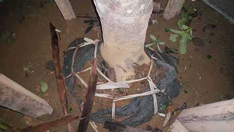Theo ông Diễm, nếu không muốn gỡ lưới ra thì phải đục lỗ để cây trổ rễ, ăn sâu vào đất thì cây mới sống được.