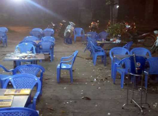 ![]() Rác vương vãi khắp quán ăn sau trận gió xoáy. |