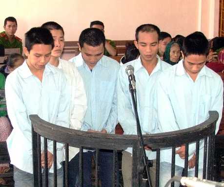 Qua đó, Hội đồng xét xử tuyên phạt Trần Thanh Bản (tự Chó, SN 1992) 4,5 năm tù giam, Bùi Tấn Cang (tự IRắc, SN 1990) 4 năm tù, Nguyễn Thành Vin (SN 1994) và Trương Hữu Tân (SN 1983, tự Chút) mỗi tên 3,5 năm tù, Trương Hữu Trọng (SN 1994) 3 năm tù treo.
