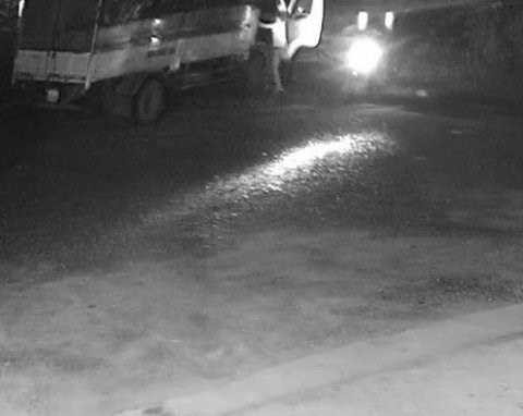 Lúc này, có hai nam thanh niên chạy xe máy đến gần xe tải của anh Linh dò xét. Lát sau, một đối tượng cạy được cửa xe leo vào cabin, từ xa người dân phát hiện sự việc nên pha đèn pin rọi đến cửa xe tải.