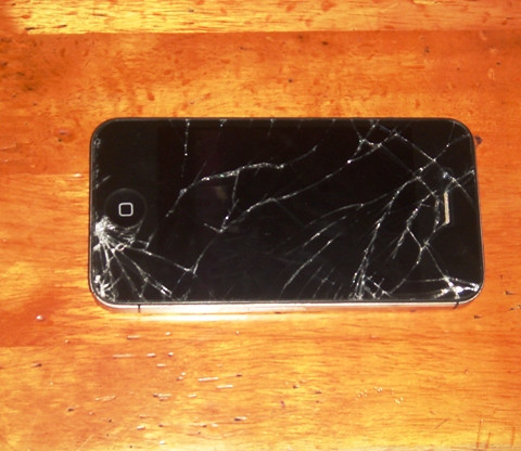 | Chiếc Iphone trên 10 triệu đồng bị nứt, hỏng nhiều sau vụ cướp. Ảnh: Phan Cường |