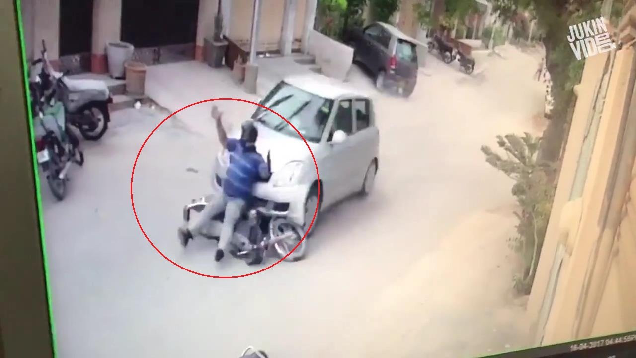 Cướp lao xe máy chặn đầu ô tô, bị gái trẻ 'cao tay' dạy bài học nhớ đời