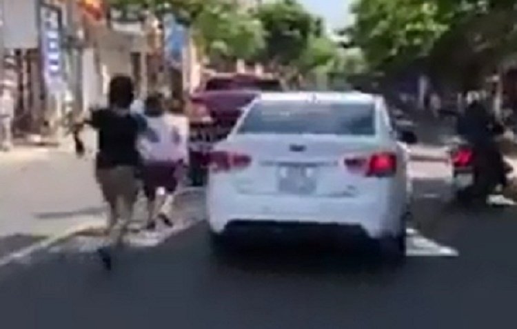 Theo đó, trong đoạn clip xuất hiện 3 người (2 nữ và 1 nam) đang cố chạy theo một chiếc ô tô màu trắng để chặn xe lại nhưng bất thành. Sau khi chiếc xe tăng tốc bỏ chạy, 2 người phụ nữ đã hô to “cướp xe”, “cướp xe kìa”.