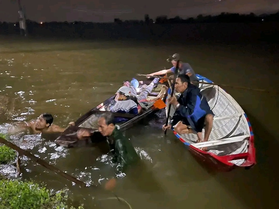 Nghe tiếng kêu cứu của gia đình ông Thảo, Công an huyện Quảng Điền đã huy động lực lượng đến hiện trường để tổ chức cứu hộ.