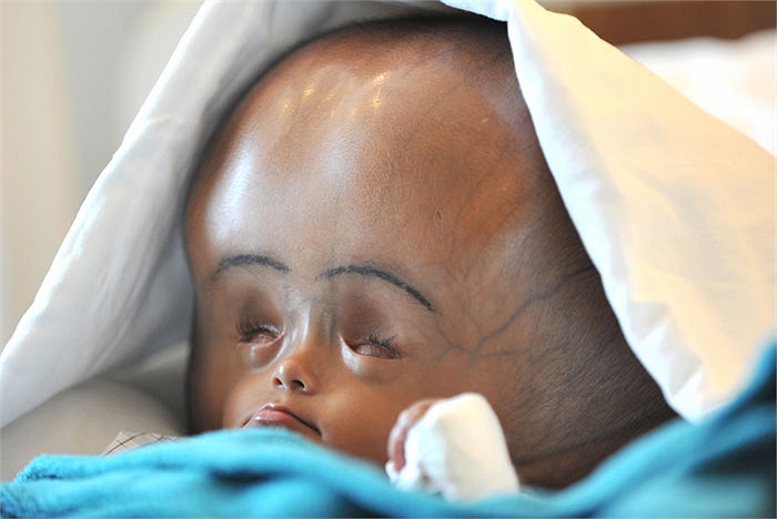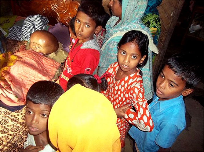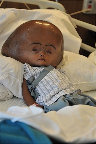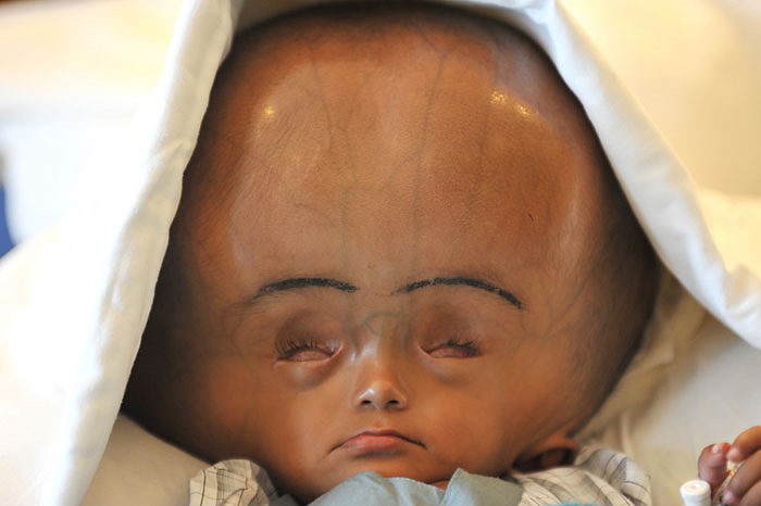 Em bé Roon Begum ở Ấn Độ bị bệnh não úng thủy với chiếc đầu phình to thu hút sự chú ý của toàn thế giới.