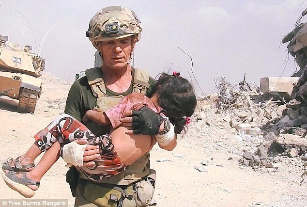 David Eubank, cựu binh sĩ thuộc lực lượng Đặc nhiệm Mỹ và hiện là tình nguyện viên cứu trợ tại Iraq cho biết, thời điểm đó, ông đang đi tuần cùng binh sĩ Iraq và bắt gặp nhóm dân thường bị các tay súng IS nã đạn liên hồi, trong đó có một bé gái 5 tuổi và một bé nhỏ tuổi hơn đang kêu khóc vì sợ hãi.