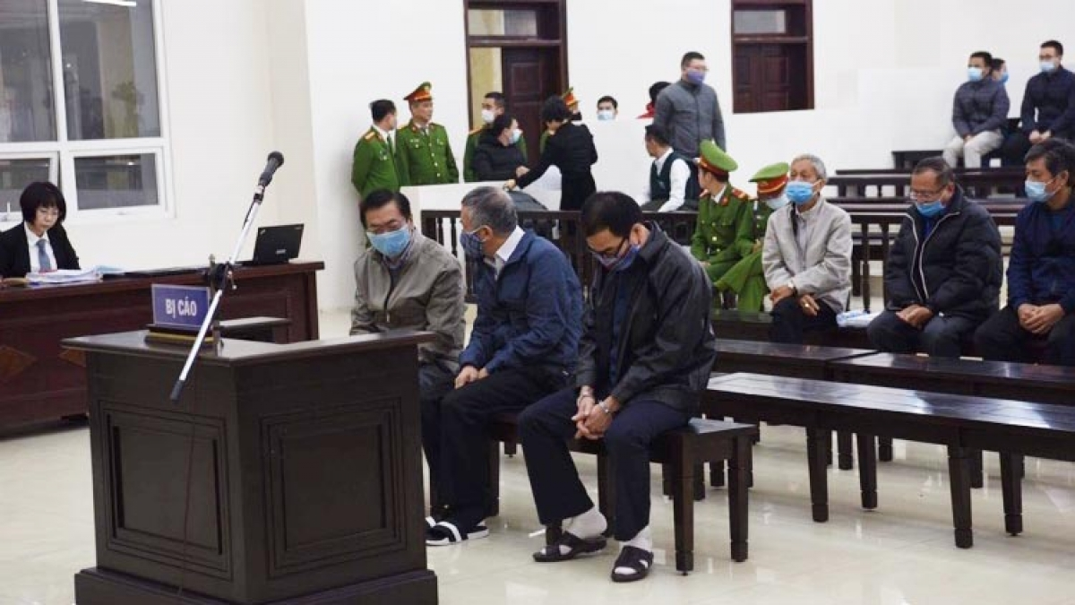 Bị cáo Vũ Huy Hoàng cùng các bị cáo khác tại phiên toà sơ thẩm