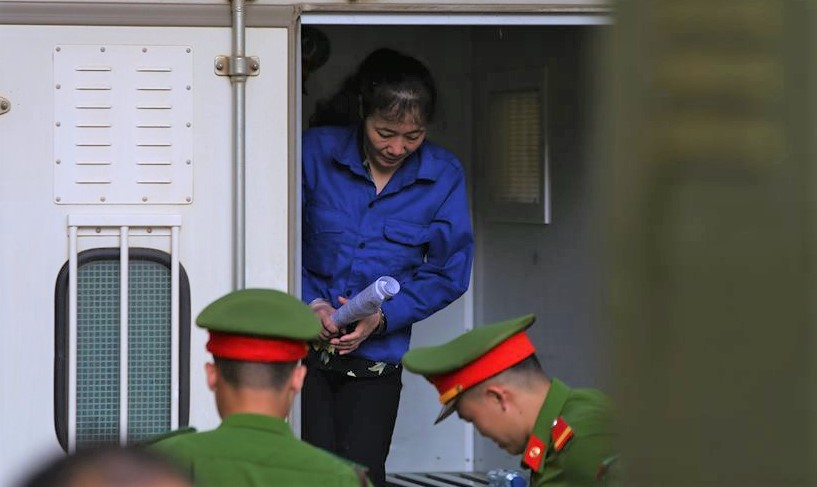 Bị cáo Nguyễn Thị Hồng Nga được cán bộ trại giam đưa đến phiên tòa xét xử vụ án gian lận thi cử hồi giữa tháng 9/2019.