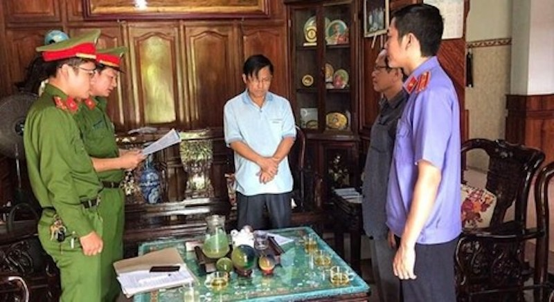 Cơ quan điều tra đọc lệnh khởi tố đối với ông Thái Vĩnh Tính. (Ảnh: Báo Công an TP HCM)