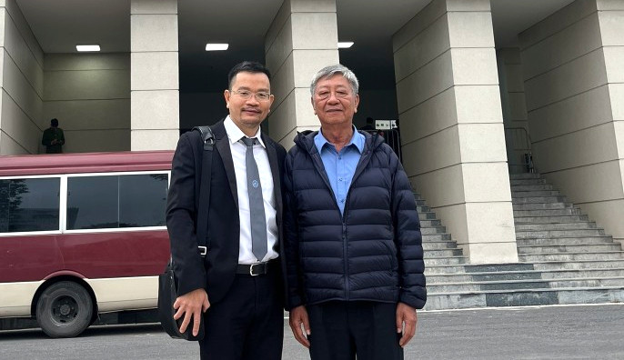Ông Nguyễn Thành Danh (bên phải) và luật sư Nguyễn Thành Công (đoàn luật sư TP.HCM).