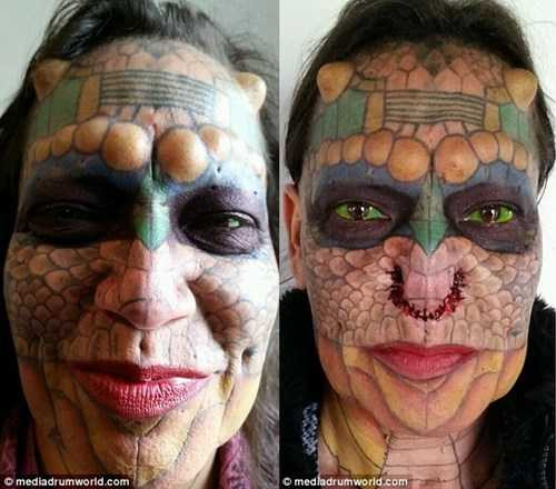 Trong vài năm qua, Tiamat thực hiện nhiều cuộc phẫu thuật lớn nhỏ; bao gồm cắt tai, mũi, nhổ răng, tách lưỡi, tạo sừng và đổi màu mắt; để biến đổi cơ thể giống với hình dáng rồng. Người này còn xăm hình vảy rồng hầu như kín khắp cơ thể.