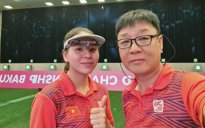 HLV Park Chung-gun và xạ thủ Trịnh Thu Vinh tại Olympic 2024.