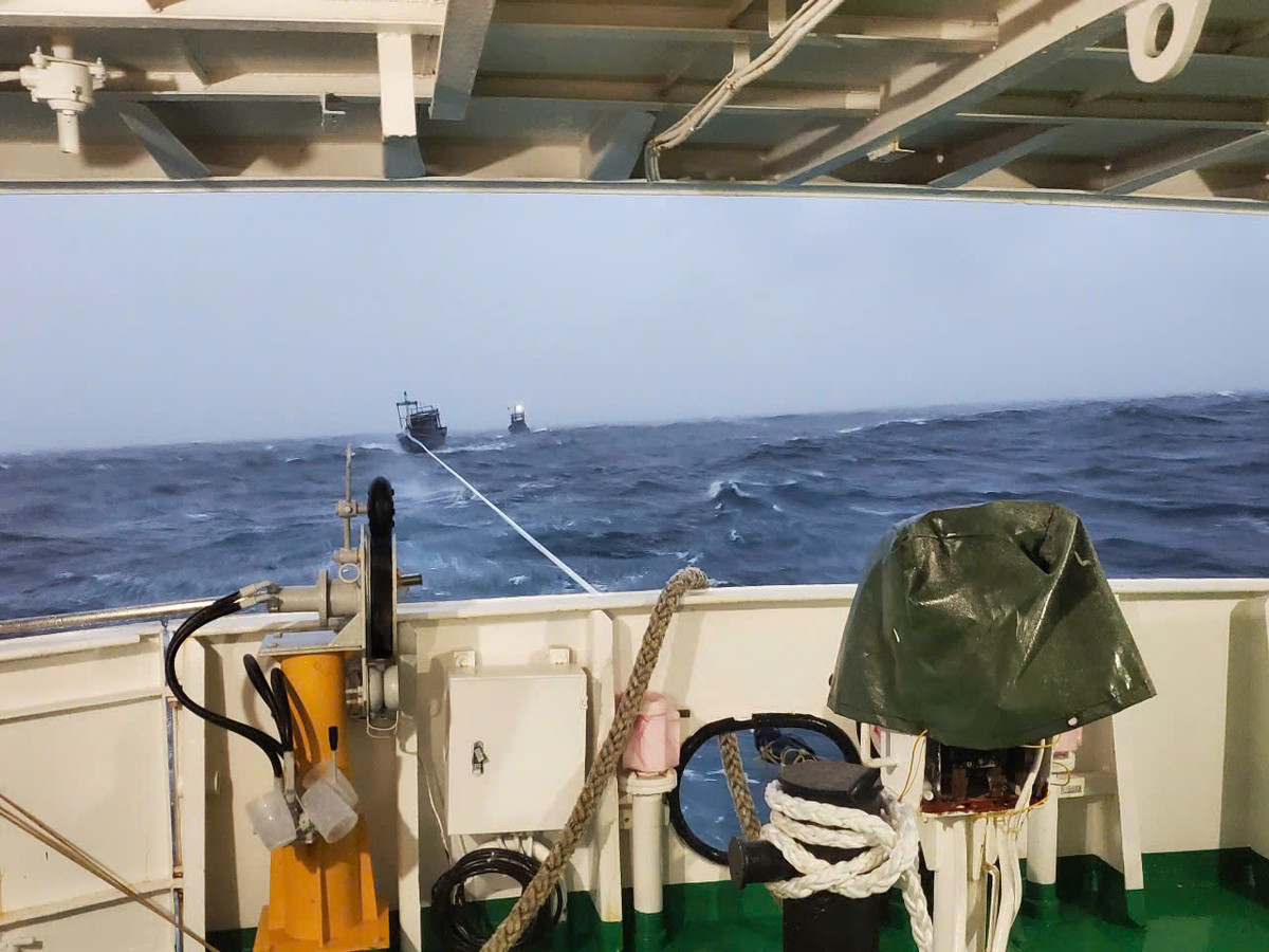 Tàu cá của ngư dân Quảng Nam được lai dắt về đảo Lý Sơn. (Ảnh: C.T)