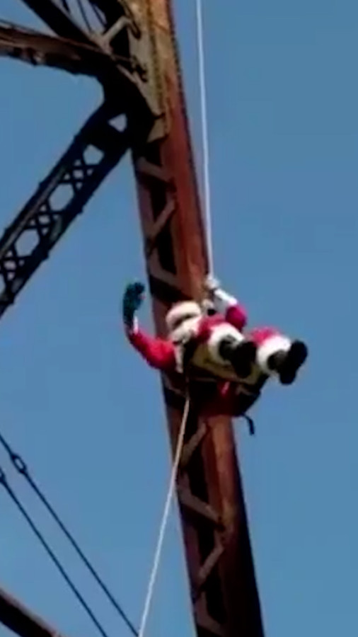 Cựu lính cứu hỏa hóa thân ông già Noel đu dây tặng quà cho trẻ em nghèo