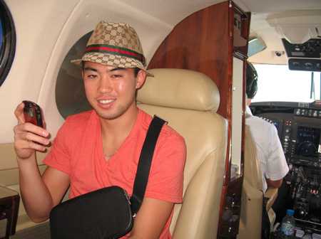 | Lee Nguyễn trên phi cơ riêng của bầu Đức |