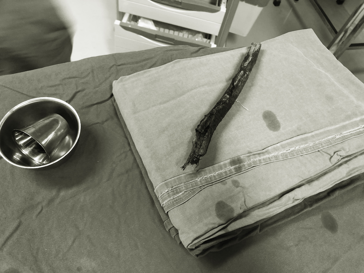 Cây gỗ được lấy khỏi mặt bệnh nhân.
