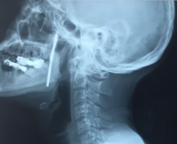 TS. BS Vũ Ngọc Tú - Trung tâm Phẫu thuật Tim mạch và Lồng ngực, Bệnh viện Hữu nghị Việt Đức cho biết, người bệnh được chẩn đoán vết thương phức tạp vùng cổ, do dị vật kim loại dài, xiên từ hầu họng vào trong miệng. Đây là vùng có rất nhiều cơ quan hệ trọng của cơ thể như đường thở (khí quản), đường ăn (thực quản), các mạch máu nuôi não (động mạch cảnh) ...