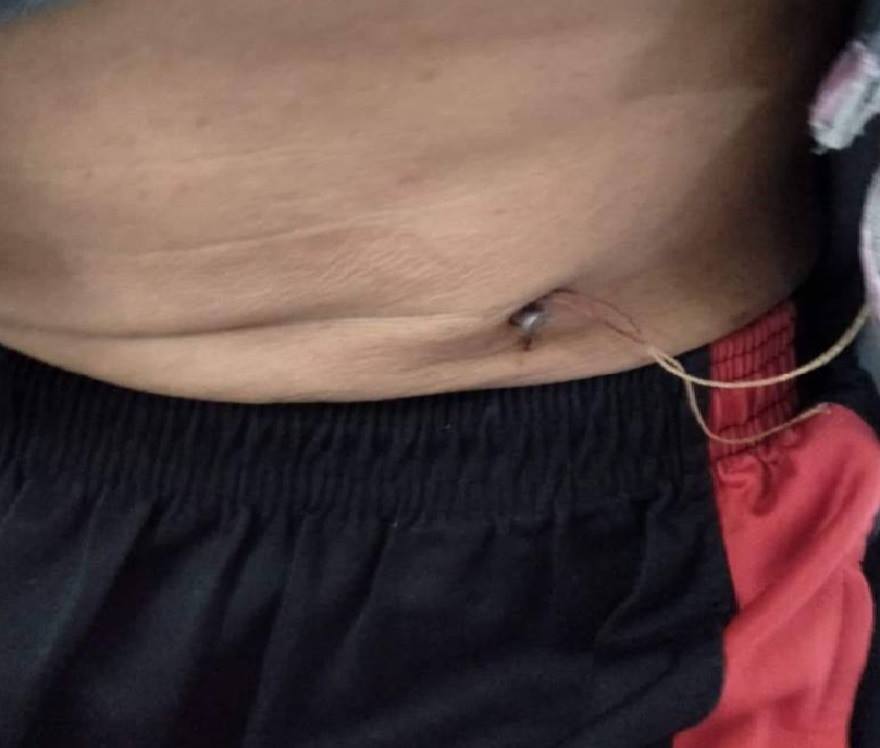 Anh này được đưa vào viện trong tình trạng đau bụng dữ dội, chảy máu thành bụng, choáng và có một cây đinh đâm xuyên thành bụng.