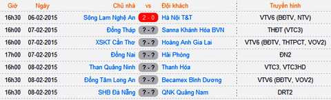 LỊCH THI ĐẤU VÒNG 7 V-LEAGUE 2015