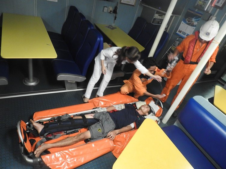 Qua chẩn đoán ban đầu của các y bác sỹ, tình trạng nạn nhân rất nguy kịch do bị đa chấn thương, mất máu nhiều dẫn đến bất tỉnh, cần được trợ giúp y tế khẩn cấp và đưa vế đất liền chữa trị.