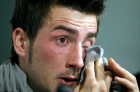| Những giọt nước mắt lăn dài trên má Miki ngày anh tuyên bố treo giày vì bệnh tật. |