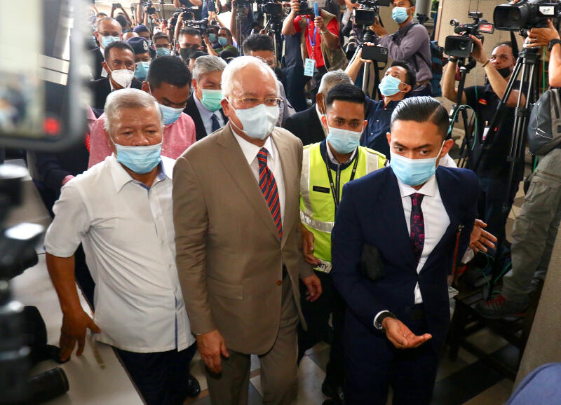 Ông Najib đến tòa lúc 10 giờ sáng 28/7 (giờ địa phương). Nhiều người ủng hộ tập trung bên ngoài phiên tòa.