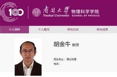 Hu Jinniu là giáo sư tại khoa Vật lý thuộc Đại học Nam Đài ở Thiên Tân. Anh nhận bằng Cử nhân Vật lý tại Đại học Nam Đài vào năm 2006 và bắt đầu nghiên cứu tiến sĩ vào năm sau đó.