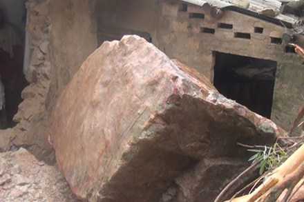 | Đá lở khiến 3 ngôi nhà bị hư hỏng hoàn toàn. |