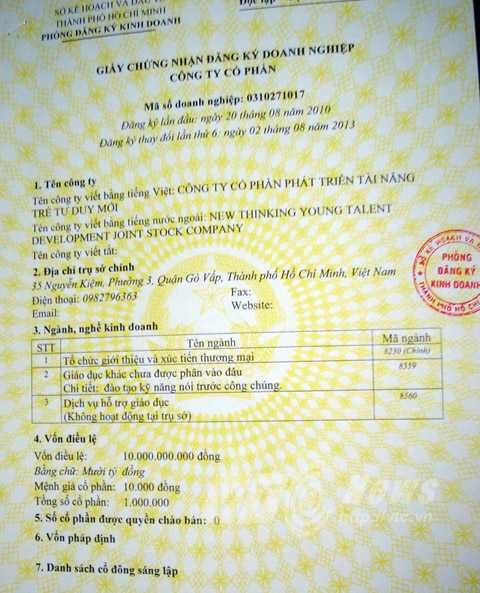Thậm chí, theo tìm hiểu của PV, những điều quan trọng nhất trong sở hữu công ty như thay đổi Giấy phép kinh doanh (đăng ký lần đầu ngày 20/08/2010; Đăng ký thay đổi lần thứ 6 là ngày 02/08/2013), hay việc nâng vốn điều lệ từ 2 tỷ đồng lên 10 tỷ đồng, cũng như thay đổi Giám đốc công ty (người đứng tên hiện tại là Lê Thị Thúy Ngân, 19 tuổi, quê Hà Tĩnh), kể cả việc di dời trụ sở công ty NTG từ quận 3 về quận Gò Vấp... các cổ đông sáng lập đều không hề hay biết.