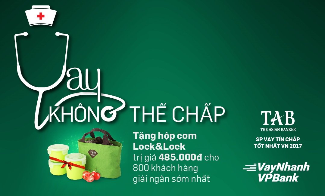 Chính vì thế, VPBank quyết định thực hiện 1 chính sách ưu đãi đặc biệt, dành riêng đến các cán bộ nhân viên công tác tại bệnh viện để chung tay giảm tải áp lực tài chính trong cuộc sống cho các cán bộ y tế. Với thông điệp thấu hiểu: Công việc vốn không dễ dàng, hãy làm cuộc sống nhẹ nhàng hơn, VPBank hy vọng gói vay tín chấp ưu đãi này sẽ là một giải pháp tài chính ngắn hạn hiệu quả. Gói vay với lãi suất ưu đãi có hạn mức vay tới 200 triệu mà không phải thế chấp. Đặc biệt hơn từ 15/11/2017 đến 30/01/2018, mỗi khách hàng giải ngân thành công sẽ được nhận một bộ hộp cơm Lock&Lock trị giá 485.000đ.