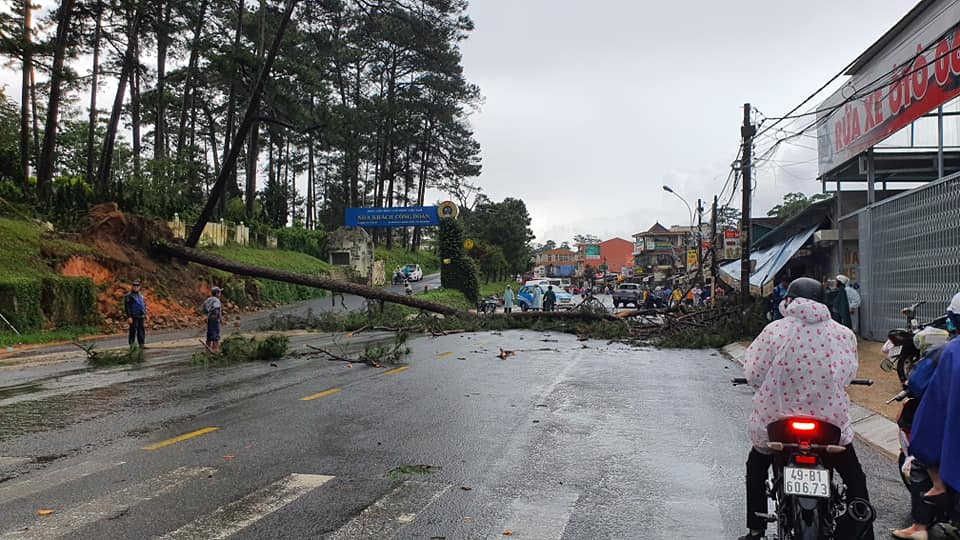 Tại khu vực phía sau căn nhà số 34, Ngô Thì Sỹ, taluy bị sạt lở có chiều dài gần 20m và cao khoảng 4m. Tương tự, tại đường Yersin, nhiều cây thông hàng chục năm tuổi bị gió quật ngã chắn ngang đường, giao thông qua lại bị tắc nghẽn.