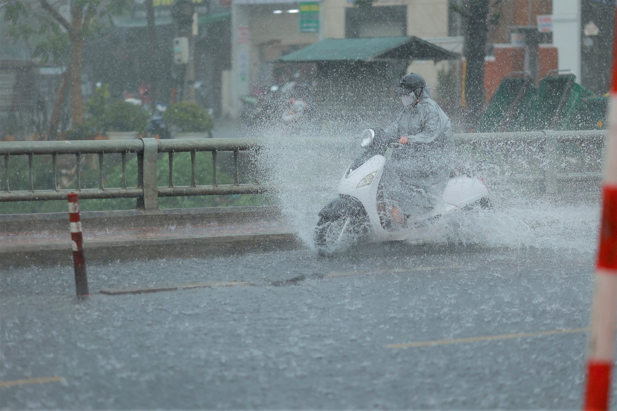 Mưa lớn, có nơi xuất hiện mưa đá khiến người dân gặp khó khăn khi di chuyển.