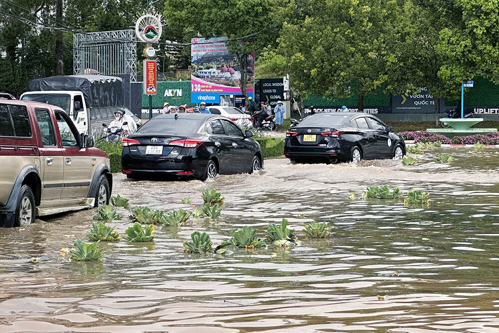 Tương tự, đoạn đường trong khu quy hoạch Golf Valley Đà Lạt, đường Trần Quốc Toản, vòng xuyến giao với đường Bùi Thị Xuân, trước cổng Khu du lịch Vườn hoa thành phố Đà Lạt cũng bị ngập cục bộ. Một số xe ô tô ở phường 9 cũng bị nước cuốn trôi, hư hỏng.