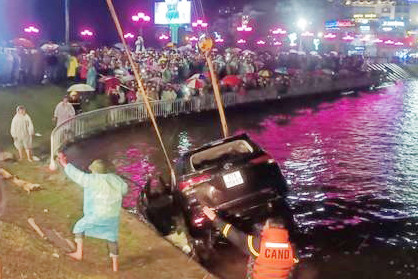 Đến khoảng 19h45, cơ quan chức năng đã vớt được chiếc xe, đồng thời đưa hai thi thể nạn nhân lên bờ.