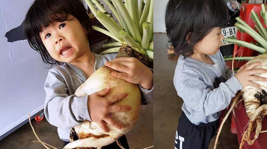 Củ cải khổng lồ to gần bằng em bé của gia đình anh Nguyễn Thế Anh ở Lâm Đồng