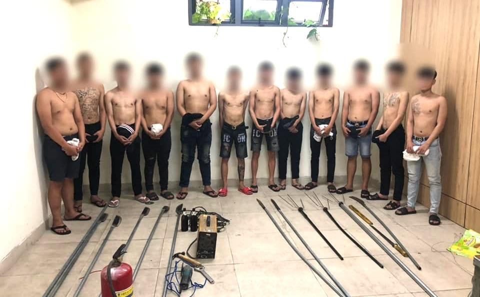 Nhận tin, Công an quận Hải Châu chỉ đạo Đội Cảnh sát Hình sự phối hợp Công an phường Hải Châu 1 khẩn trương xác minh, truy xét nhanh, triệu tập 13 thanh thiếu niên liên quan làm việc. Lực lượng công an cũng thu giữ nhiều hung khí như 8 cây dao phóng, 1 kiếm tự chế, 2 vỏ chai thủy tinh, 3 cây chĩa, 1 thanh sắt dài 3m, 1 bình chữa cháy mini.
