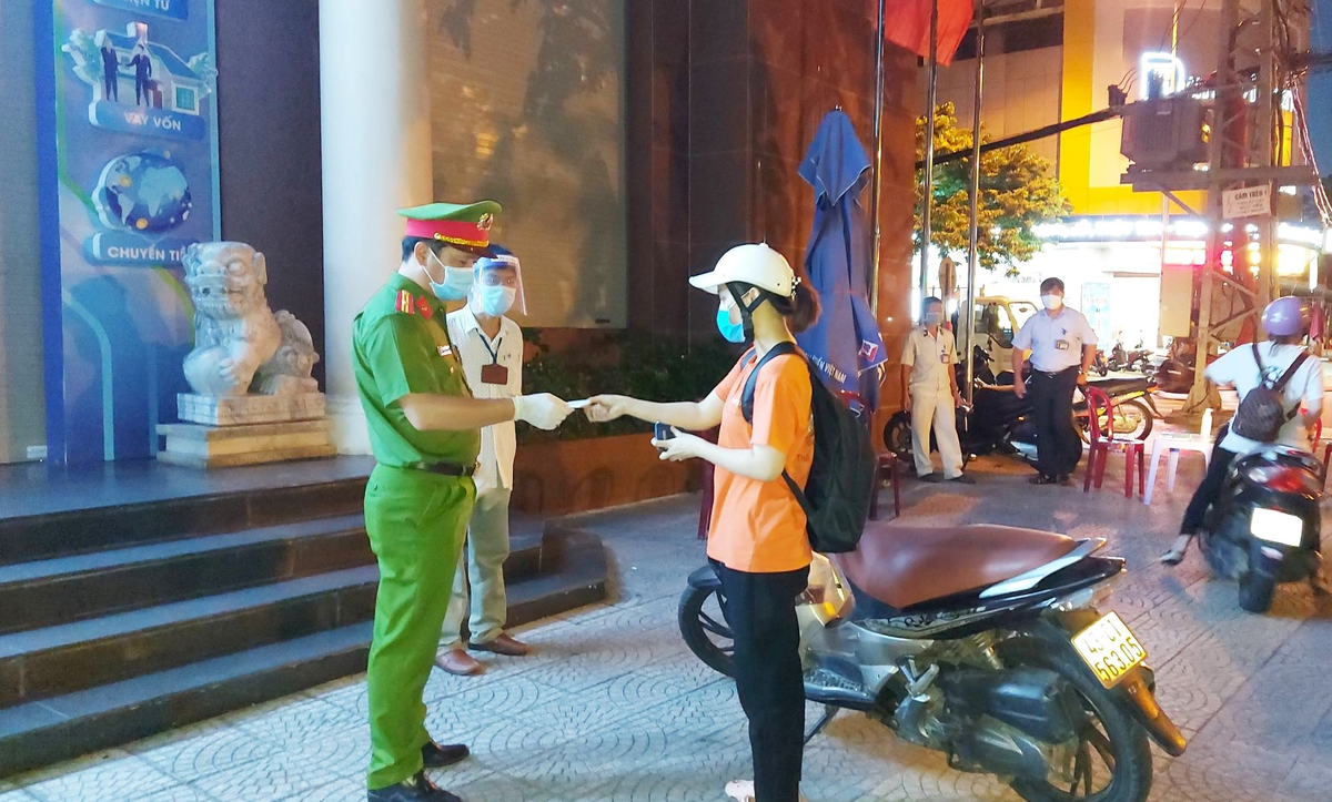 Lực lượng Công an Đà Nẵng kiểm tra giấy đi đường của người dân.