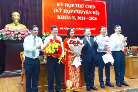 Ông Trần Phước Sơn (thứ 2 từ trái sang) và bà Nguyễn Thị Anh Thi được bầu làm Phó Chủ tịch HĐND TP Đà Nẵng Khóa X, nhiệm kỳ 2021-2026.
