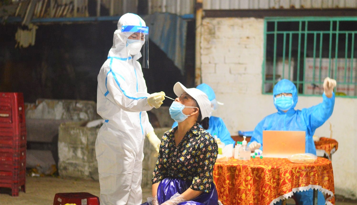 Lấy mẫu xét nghiệm COVID-19 cho người lao động làm việc tại lò mổ gia súc, gia cầm Đà Sơn, Đà Nẵng.