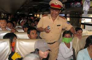 Trong số đó, có đến 25 trường hợp chở quá số người quy định với số người từ 5-6 người, một số trường hợp chở vượt đến 14-16 người. Đơn cử, xe khách giường nằm BKS 37B-002.07 do tài xế Nguyễn Xuân Chiến (SN 1982, trú Đô Lương, Nghệ An) điều khiển lưu thông theo tuyến Nghệ An - Bình Dương. Tại thời điểm bị kiểm tra, trên xe chở 62/42 người; xe khách BKS 29V-8894 do tài xế Nguyễn Văn Anh (SN 1969, trú Thọ Xuân, Thanh Hóa) điều khiển lưu thông theo tuyến Thanh Hóa -TPHCM, trên xe chở 65/47 người.