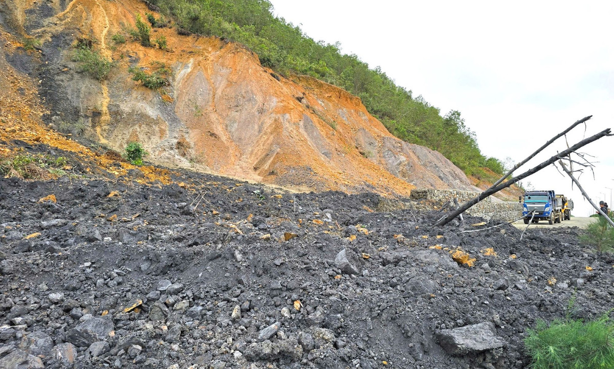 Cụ thể, tại vị trí Km5 và Km6 qua xã Hòa Phú, huyện Hòa Vang liên tiếp xảy ra sạt lở, lần gần đây nhất ngày 13-15/12, cả chục tấn bùn đất sụt trượt xô đổ bờ kè bằng rọ đá, tràn lấp hoàn toàn mặt đường bên phải với chiều dài khoảng 100m.
