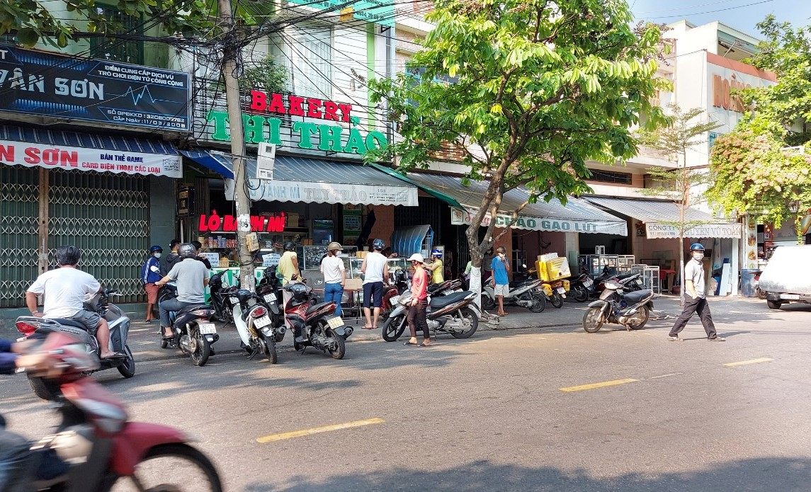 Các tiệm bánh mì "cháy hàng" trong ngày đầu Đà Nẵng thực hiện lệnh ngừng hoạt động cửa hàng ăn bán hàng qua mạng, bán mang đi.