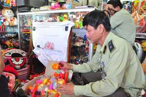 Theo đó, các mặt hàng được kiểm tra là đồ chơi trẻ em, đèn lồng trung thu các loại có nguồn gốc xuất xứ Trung Quốc và trong nước được bày bán trên địa bàn.
