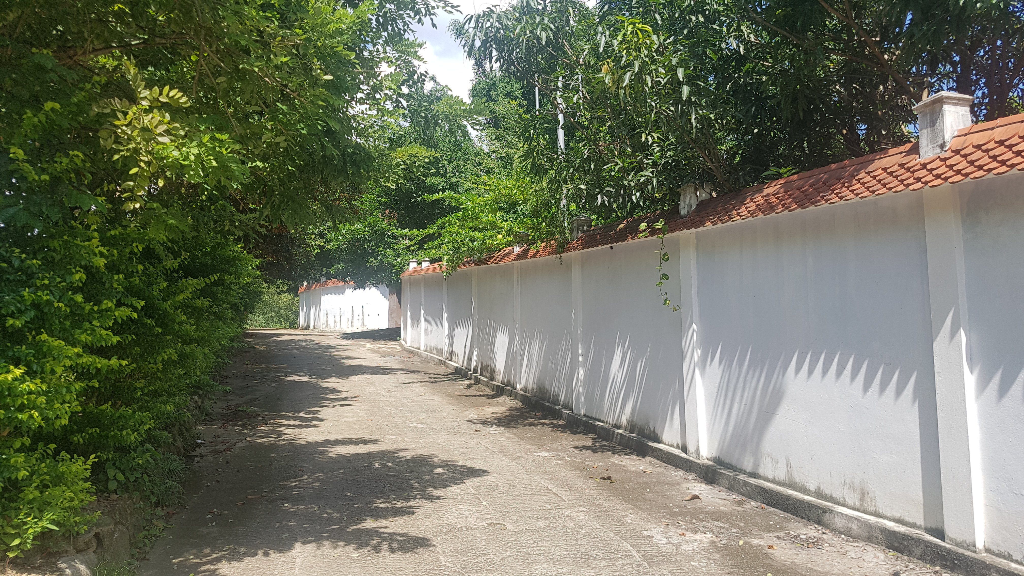 Tường xây bao quanh khu biệt phủ của ông Quang vẫn còn nguyên.